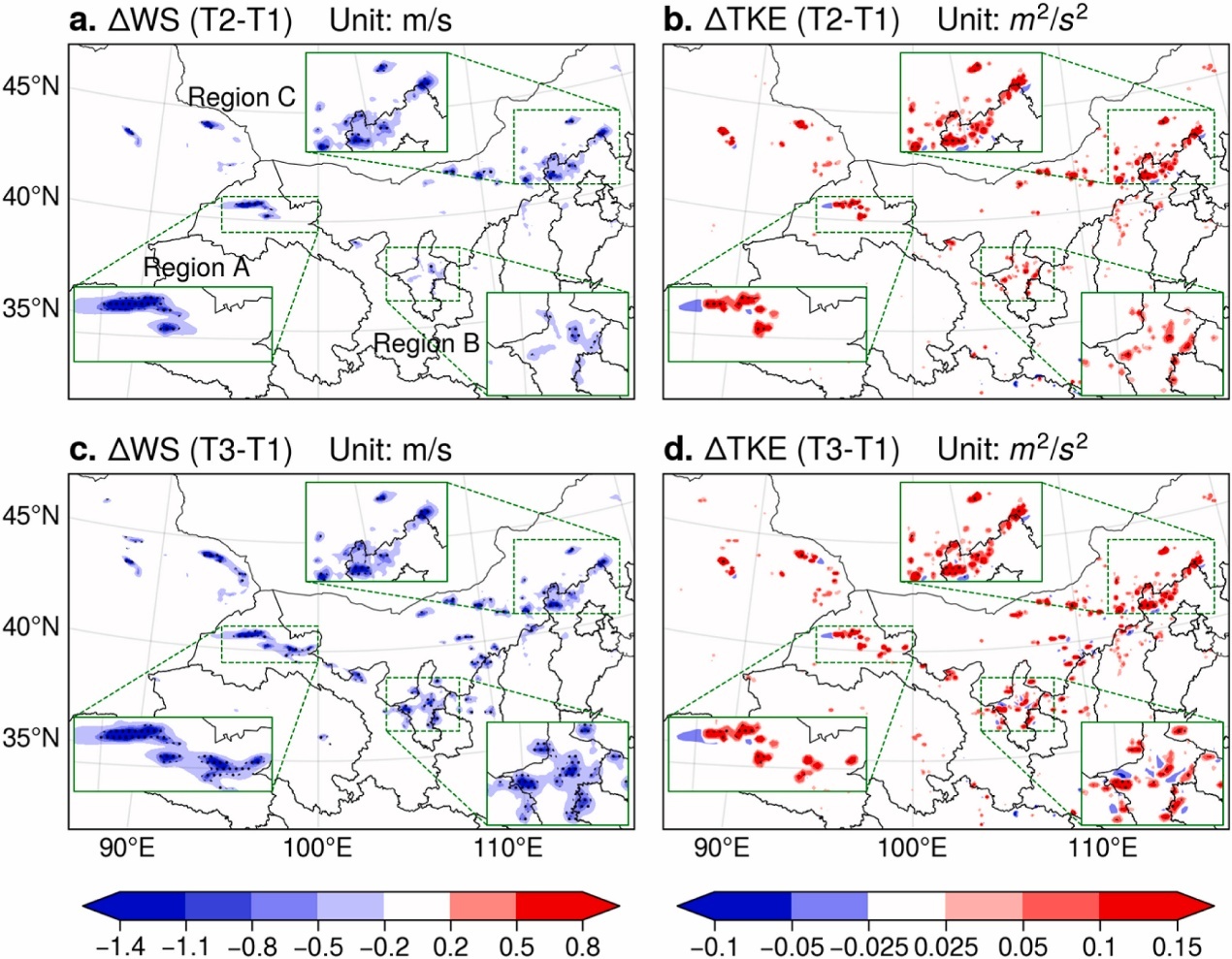 相關(guān)研究成果以Potential impacts of large-scale wind farms on regional climate and vegetation in northern China: Insights from modeling studies為題,發(fā)表于國際權(quán)威期刊Energy。該研究得到內(nèi)蒙古自治區(qū)“揭榜掛帥”項目、國家自然科學基金等的資助。