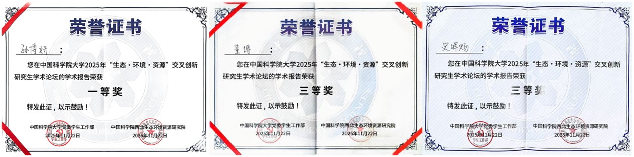 論壇設(shè)置“生態(tài)與環(huán)境領(lǐng)域組”“資源與工程領(lǐng)域組”及“弘揚科學(xué)家精神與研究生思政教育管理研討組”三大專題板塊,聚焦國家戰(zhàn)略需求與科技前沿,推動學(xué)科融合與協(xié)同創(chuàng)新。青海鹽湖所研究生緊扣青藏高原生態(tài)安全屏障、柴達木盆地資源高效利用與環(huán)境保護等關(guān)鍵科學(xué)問題等多個方向進行學(xué)術(shù)報告和墻報展示?,F(xiàn)場討論熱烈,學(xué)術(shù)氛圍濃厚。通過這一高水平平臺,青海鹽湖所研究生不僅展示了最新的科研進展,更與兄弟院所建立了深入的學(xué)術(shù)聯(lián)系,為后續(xù)合作奠定了良好基礎(chǔ)。參會研究生們憑借出色表現(xiàn),成績斐然。孫博妍榮獲優(yōu)秀學(xué)術(shù)報告一等獎;董博與史暉煬榮獲優(yōu)秀學(xué)術(shù)報告三等獎;馬智超、甄璐菲、盧文薇的墻報榮獲優(yōu)秀墻報獎。